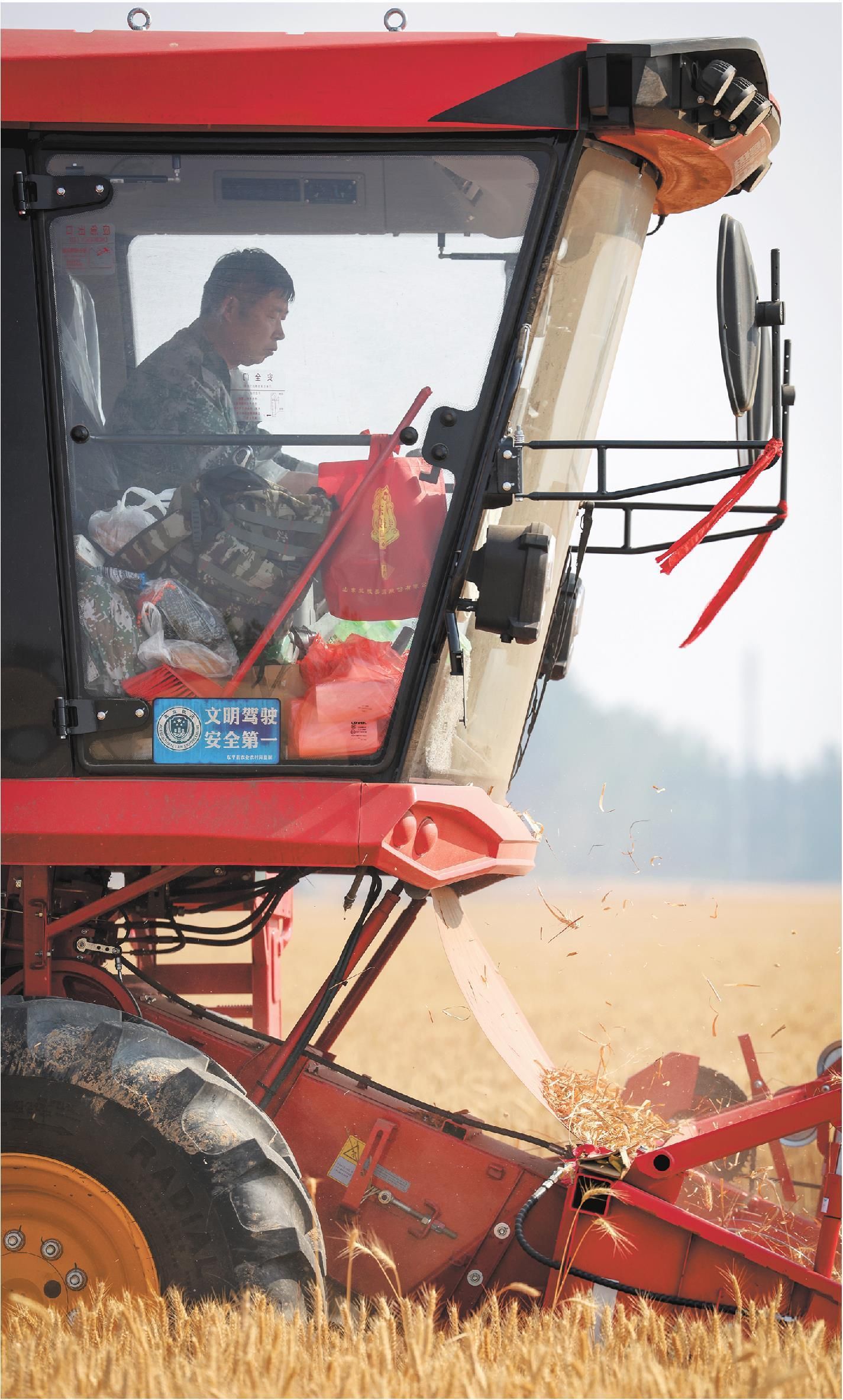 麦田里,赵启玉操作着收割机,见证着一位又一位农户的丰收。