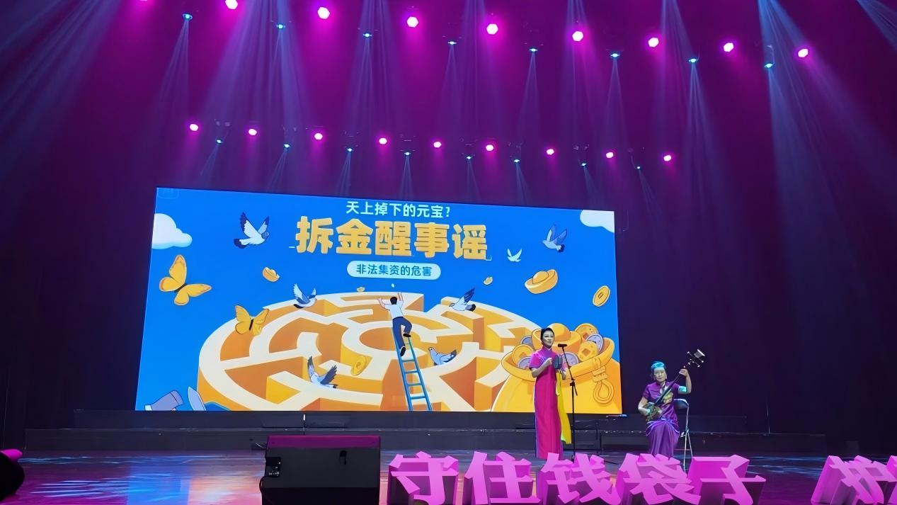 活动现场,济南市曲艺团演员和金融机构的防非志愿者们带来的单弦表演《拆金醒世谣》、快板书《小心有“诈”》等节目,用艺术形式揭示非法集资骗局,通过情景剧警示、歌曲呐喊、案例剖析,使群众对非法集资非法性、社会性、利诱性的特点有了更深入了解,让“非法集资是陷阱,高利保本别相信”“你惦记别人的高息,别人盯着你的本金”理念更加深入人心。