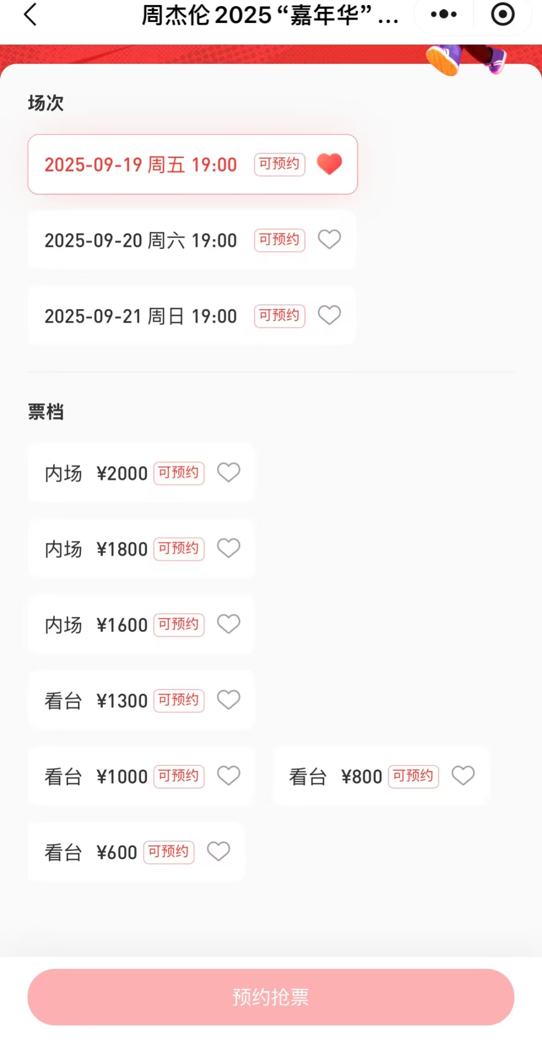 目前,猫眼App和携程App已经上架了周杰伦济南演唱会的门票销售页面,页面目前显示为“预约抢票”及“即将开售”。