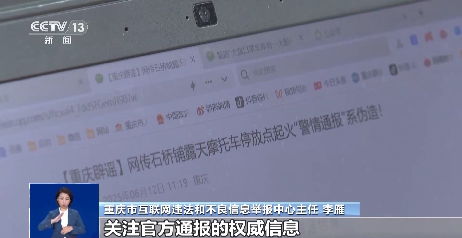 重庆市互联网违法和不良信息举报中心主任 李雁:希望广大网民在看到类似火灾、治安等突发公共事件相关信息的时候,能够保持冷静、理性,关注官方通报的权威信息,不要随意转发未经证实的消息,共同守护清朗的网络生态。