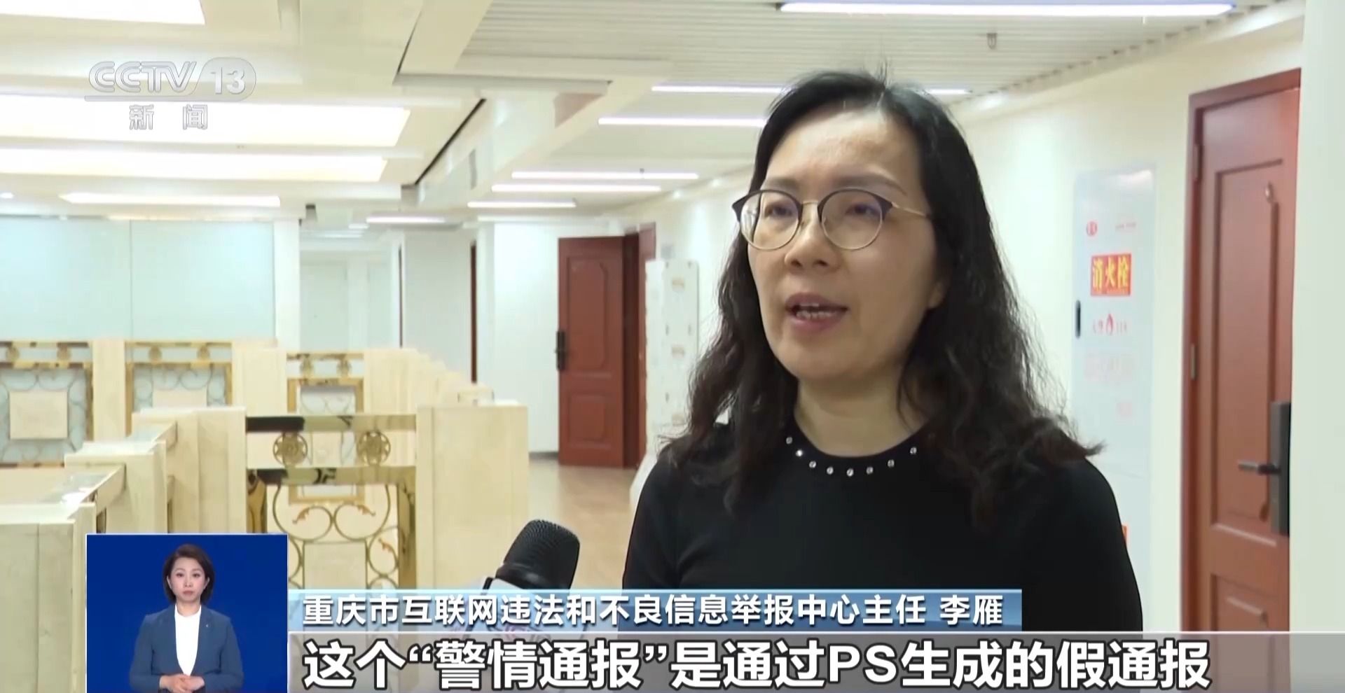 重庆市互联网违法和不良信息举报中心主任 李雁:我们及时向市公安局、市消防救援总队核实,这个“警情通报”是通过PS生成的假通报,内容与事实不符。