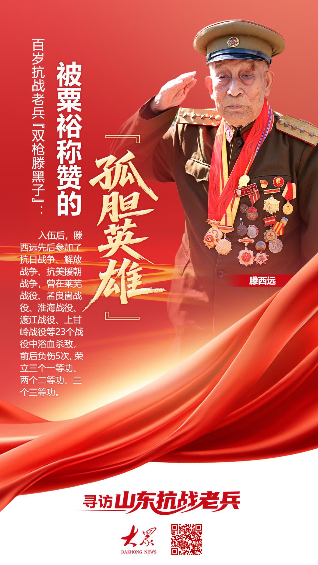 在庆功大会上,滕西远再一次被授予一等功,粟裕亲手将枪给他挂到了身上,赞道:“真是个孤胆英雄啊!”从那以后,“双枪滕黑子”的名号响彻战场。