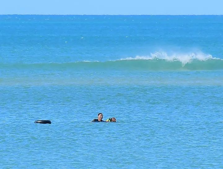 2025年6月15日,在坦桑尼亚达累斯萨拉姆市海边,张军桥(左)营救溺水的当地女子。新华社发