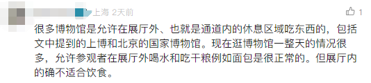 工作人员表示,事发当日,这张纸确实没有张贴。但是不在展馆内饮食,这是文明观展的通常要求。