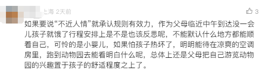 “天气那么闷热,为给孩子喂奶,按照公园的要求,我们只能从公园大门出去,喂完奶再进来。他们完全不照顾游客的体验,而且孩子那么小。这是城市文明背后的温度盲区。”