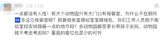 记者以游客身份咨询上海动物园,游客服务中心一工作人员表示,目前只有一个母婴室,后续是否会增设要由领导决定。