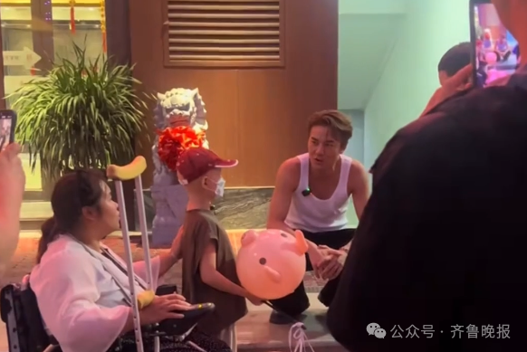 6月30日,歌手吴克群现身济南街头,为患癌小朋友“站台”,卖花筹款治病,遇见粉丝热情签名互动。此次行程,他专程探望并资助了一对饱受病痛折磨的母子——8岁肿瘤患儿小宇(化名)及其罹患罕见病的母亲谭女士。