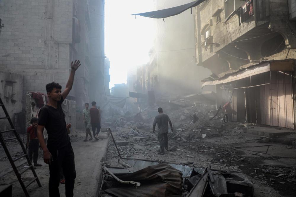 6月27日,民众在加沙城查看以军袭击后的废墟。新华社发(里泽克·阿卜杜勒贾瓦德 摄)