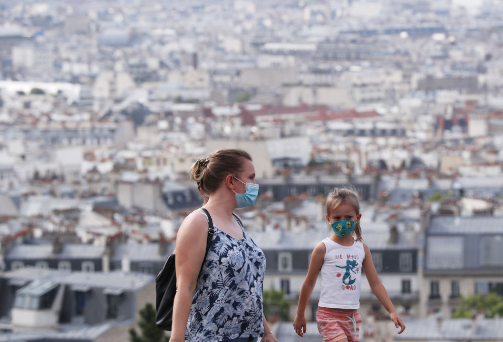 8月10日,一对母女在法国巴黎蒙马特高地参观。(新华社记者高静摄)