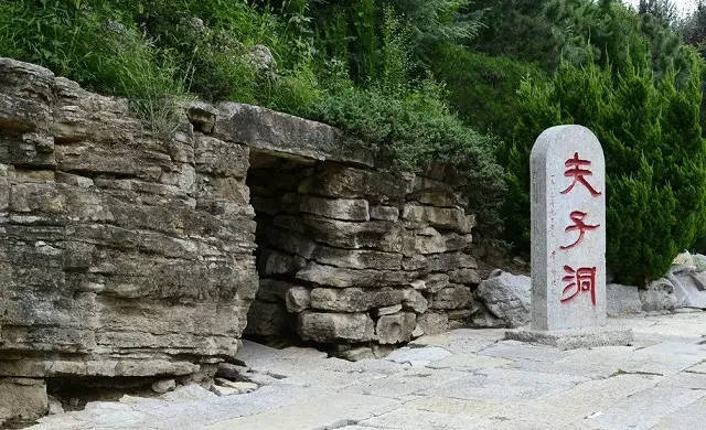 在尼山东麓有一个用石头垒成门的山洞,被称为夫子洞。相传孔母在这里生下了孔子,也有传说称孔子出生在洞外,后曾被置于此洞中,这也就生出民间流传的“凤生虎养鹰打扇”的故事。相传孔子出生后,叔梁纥嫌其太丑陋,便把他丢在尼山西麓二十四棵柏树下。他们走后,山上一只雌虎将其衔入山洞,为他哺乳;又有一只老鹰飞到洞口,张开翅膀为他打扇。这些传奇的民间故事,也为孔子的诞生更添一丝神秘的色彩。