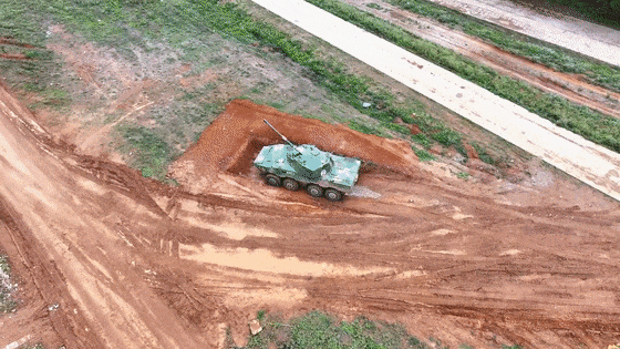 是模拟战场上车辆边撤退边打越过障碍时车身晃动十分严重炮手必须贴近实战化要求在10秒内结束射击
