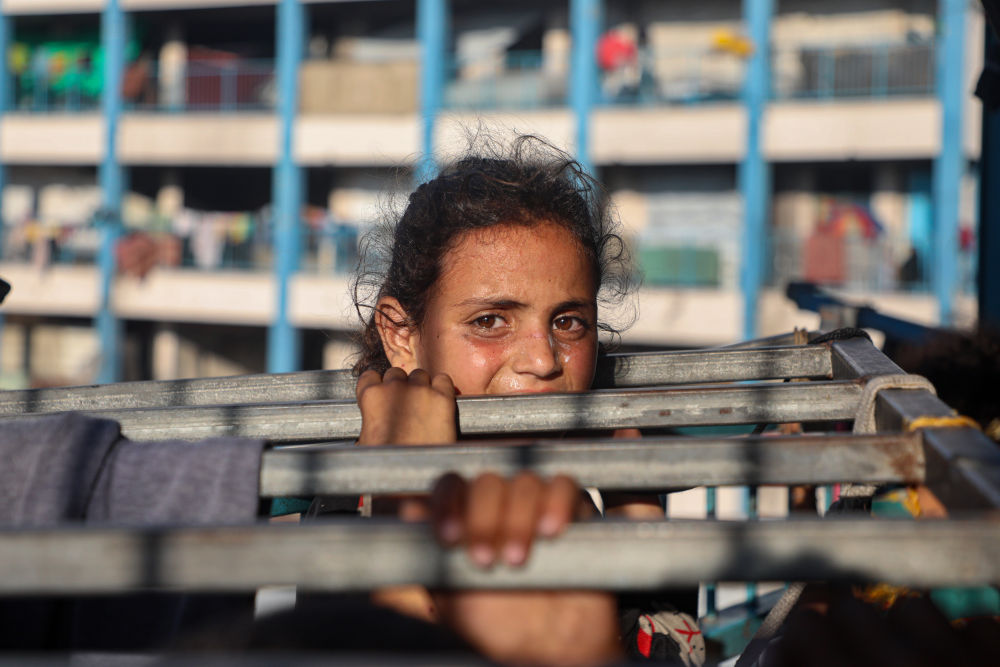 这是6月20日在加沙城一所学校里拍摄的流离失所儿童。新华社发