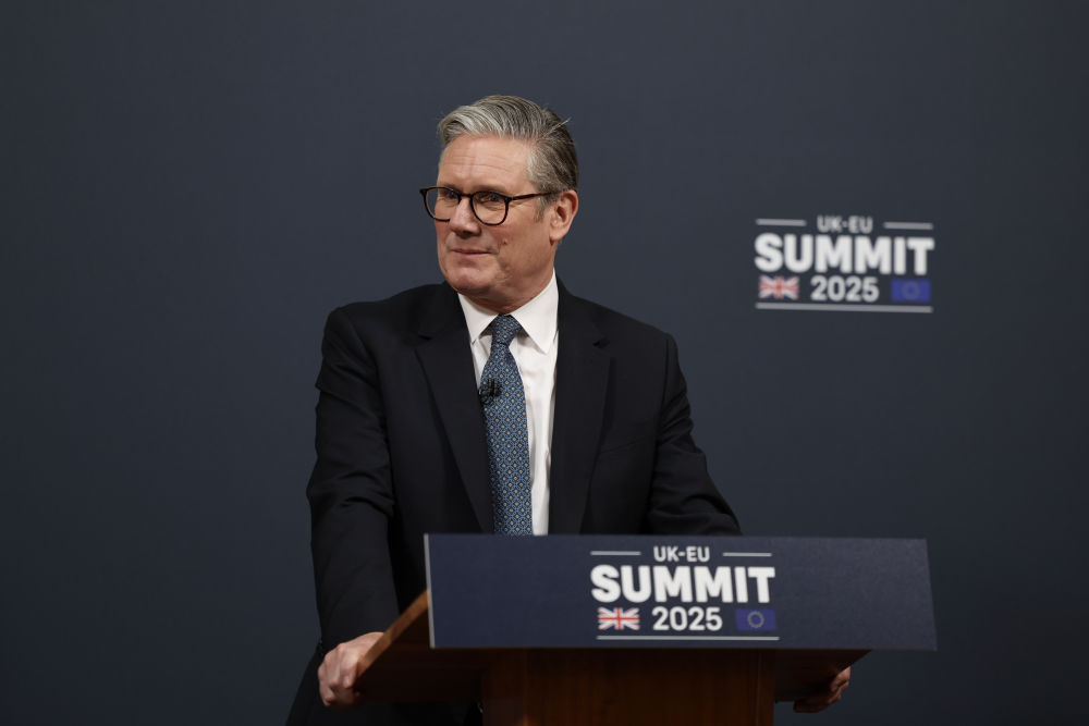 5月19日,英国首相斯塔默在伦敦与欧盟领导人举行会议后参加记者会。新华社发(英国首相府供图)