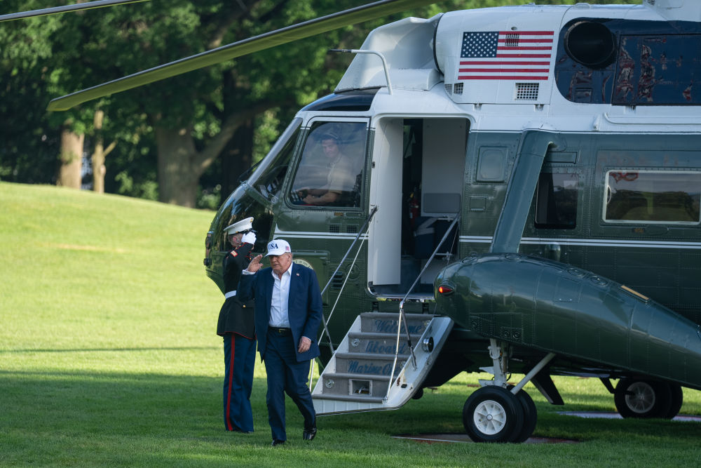 7月6日,美国总统特朗普乘直升机返回华盛顿白宫。新华社记者 胡友松 摄