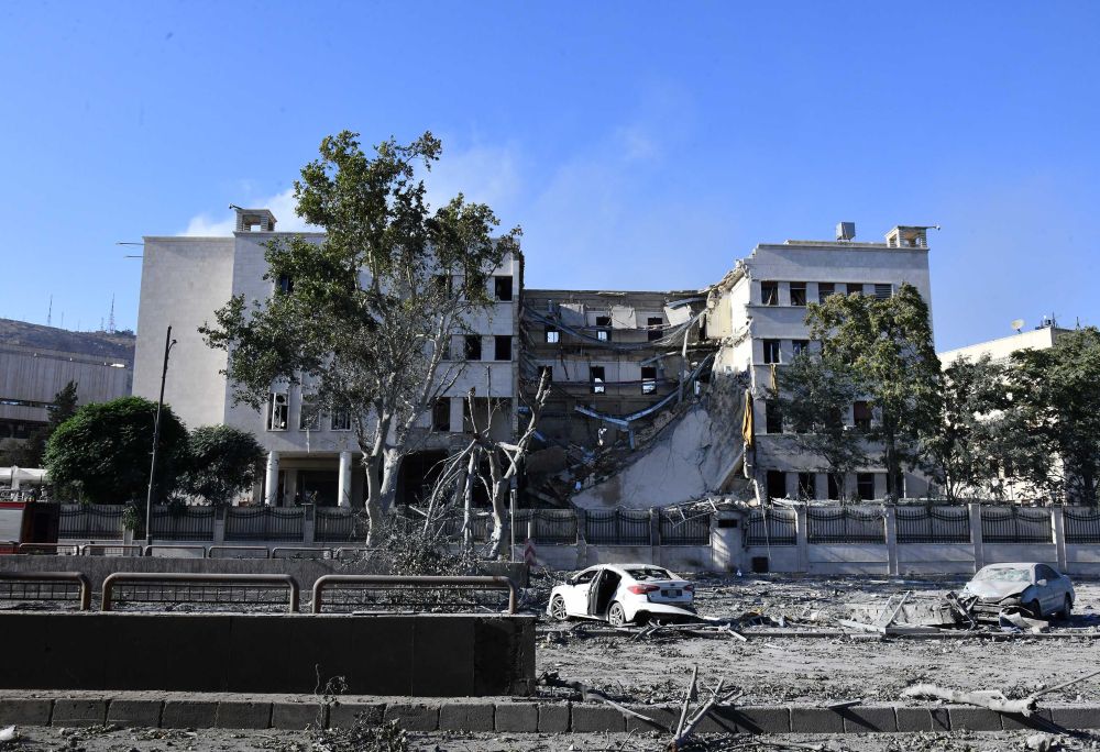 这是7月16日在叙利亚首都大马士革拍摄的在以色列空袭中受损的叙“总参谋部”大楼。新华社发(阿马尔·萨法尔贾拉尼 摄)