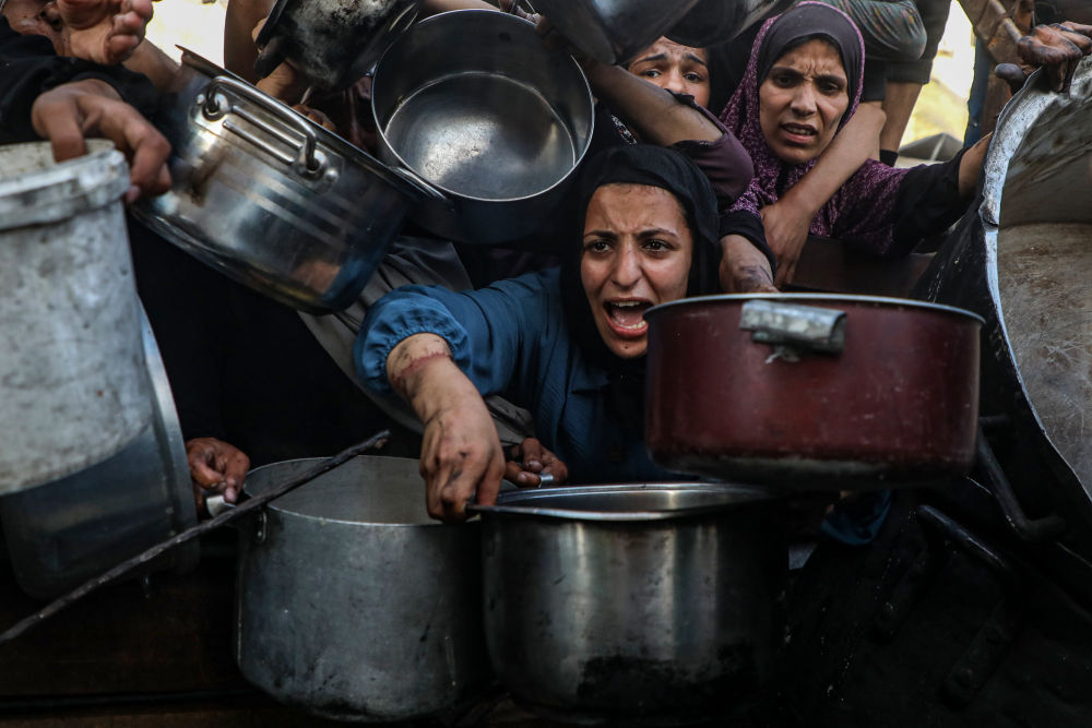 7月14日,人们在加沙城的一处食物分发点领取免费食物。新华社发(里泽克·阿卜杜勒贾瓦德 摄)