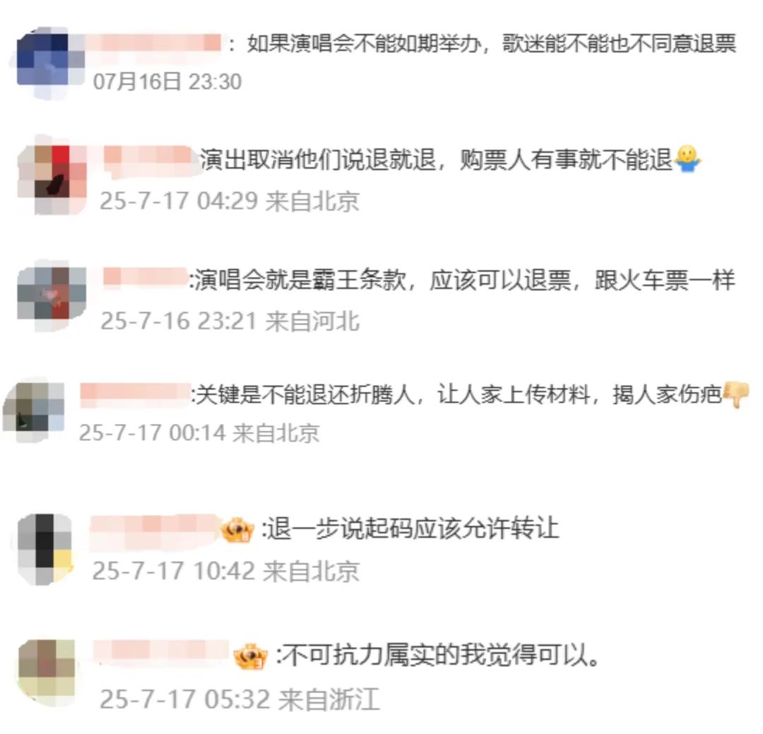 此事引发网友热议,部分网友认为平台在消费者遭遇亲人离世这种重大悲痛事件时,仍机械地以规则为由拒绝退票,违背了基本的人文关怀。也有许多网友指出平台以演出票不适用“7天无理由退货”规则、订单确认页写明“不支持退换”为由拒绝退款,属于“霸王条款”。