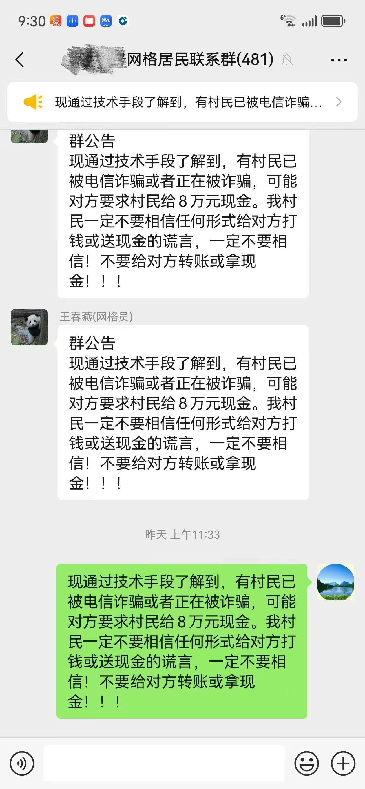 接到此线索后,沙子口派出所反诈值班人员立即开展工作,因落实该居民身份还需要时间。情况紧急之下民警灵机一动,赶忙联动社区宣传员、网格员开展排查,在社区各个楼层的微信群里紧急寻找受害群众,并发送了“紧急寻找电信诈骗受害人告知书”,称有群众被骗8万元,希望该群众能够看到信息能够意识到自己被骗。