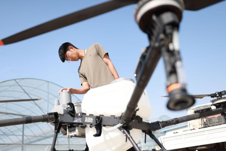 在东营广饶县李鹊镇的广袤农田上,一阵阵低沉的嗡鸣声打破了往日的宁静——搭载着智能喷洒系统的无人机在农田上空精准作业,均匀地喷洒着农药。这正是李鹊镇新农人李培栋操作的无人机飞防技术,通过“黑科技”赋能传统农业,为乡村振兴注入新动能。