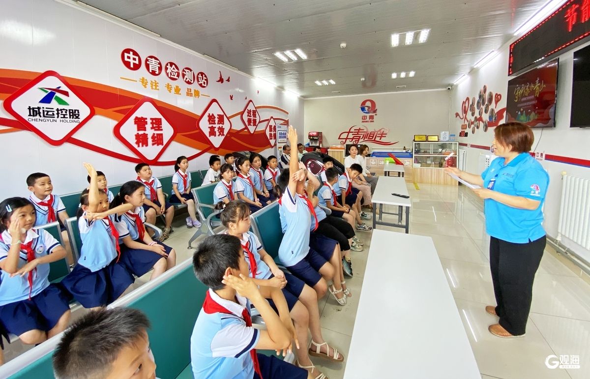随后,在中青志愿者的带领下,小学生们走进环保检测车间,近距离观摩车辆尾气检测全过程。志愿者详细介绍了环保检测标准、技术原理及数据管理流程,让小学生们直观了解到尾气检测和空气质量关系、车辆尾气检测的必要性。