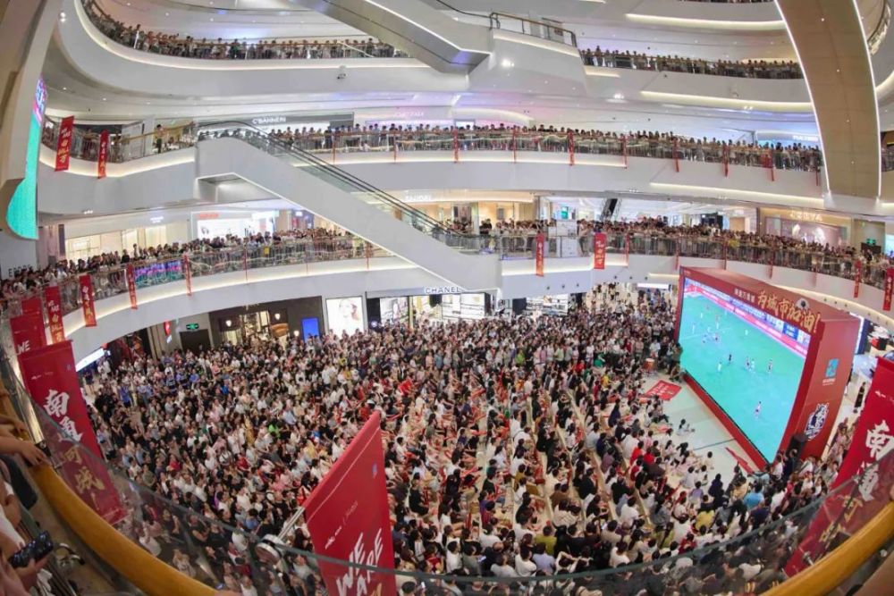 南通市民在商场里的“第二现场”观赛。图片来自南通发布