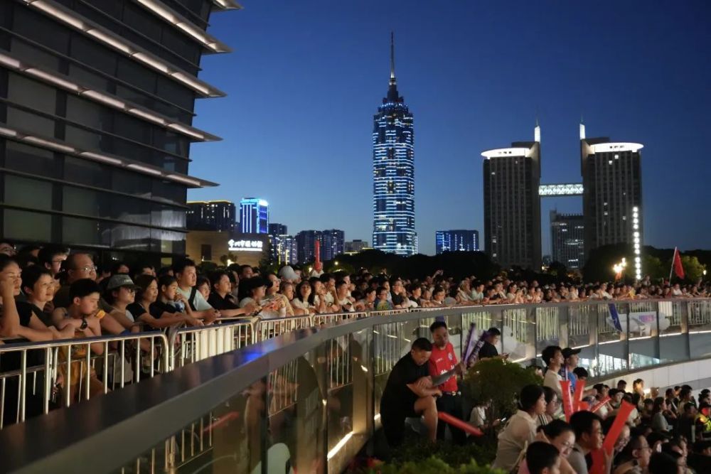 大批常州市民在市民广场上的“第二现场”看球。图片来自常州发布