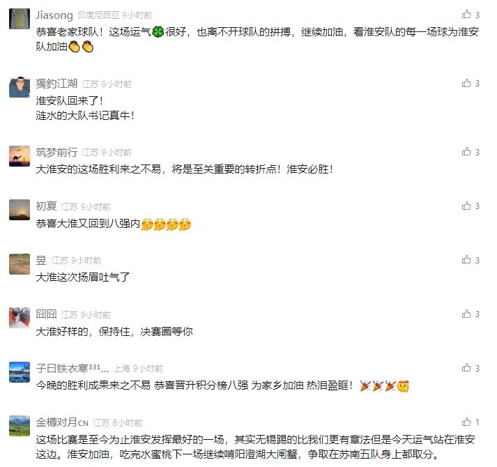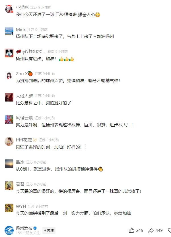 评论中,大家对扬州队的拼劲赞不绝口。图片来自扬州发布