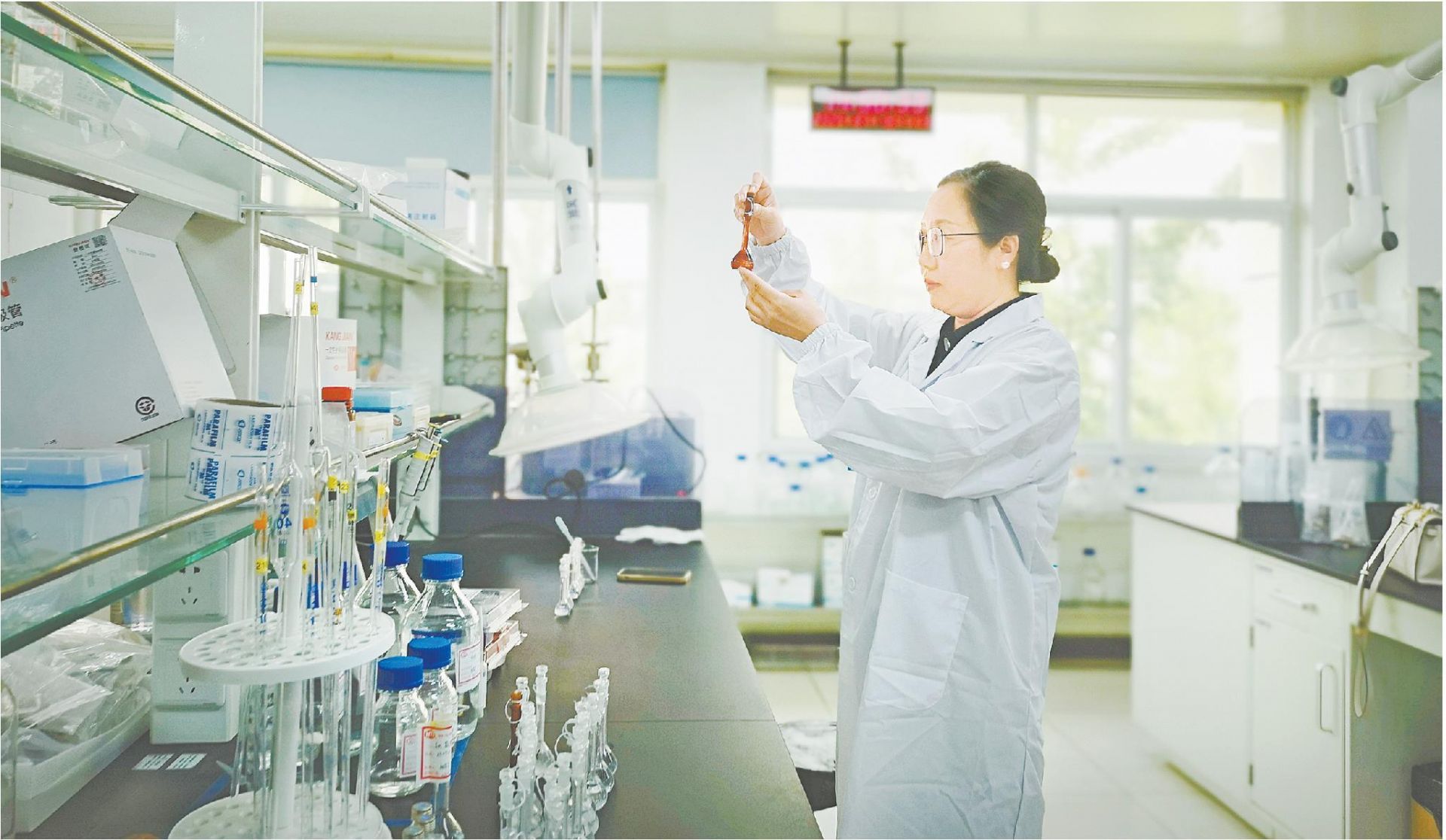 鲁南制药集团国际药品研发中心液体制剂负责人在工作。(记者徐明报道)