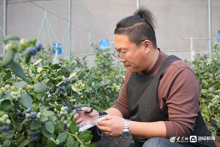 新农人的“新”,更体现在对技术的不懈钻研上。“大棚蓝莓管理是精细活,”孙芳深有体会,“土壤水分监测、温控调节、营养液精准滴灌……都得一点点学,向专家请教。以前觉得农业简单,真干起来才知道处处是学问。”张家楼作为全国知名“蓝莓之乡”,品种和技术不断迭代。孙芳夫妇的八个大棚里,花香L25、L11、F6三个品种各具风味,其中表盘大小的特种果更是招牌产品,春节前就能上市,售价高达每斤百元。