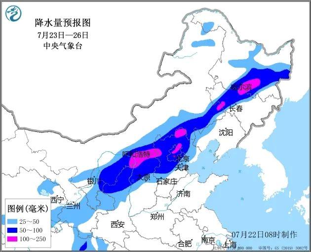 中央气象台预计,23日至26日,西北地区东部、内蒙古中西部、华北、东北地区等地部分地区有大到暴雨,局地大暴雨。其中,内蒙古中西部偏南地区、陕西北部、山西中北部、河北中北部、北京、天津北部、吉林中西部、黑龙江中南部等地的部分地区累计降雨量将达50至100毫米,局地可达150毫米以上;上述部分地区并伴有短时强降雨、雷雨大风或冰雹等强对流天气。