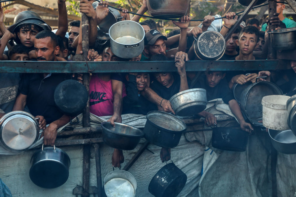7月20日,在加沙城,当地民众等待领取食物。新华社发(里泽克·阿卜杜勒贾瓦德摄)