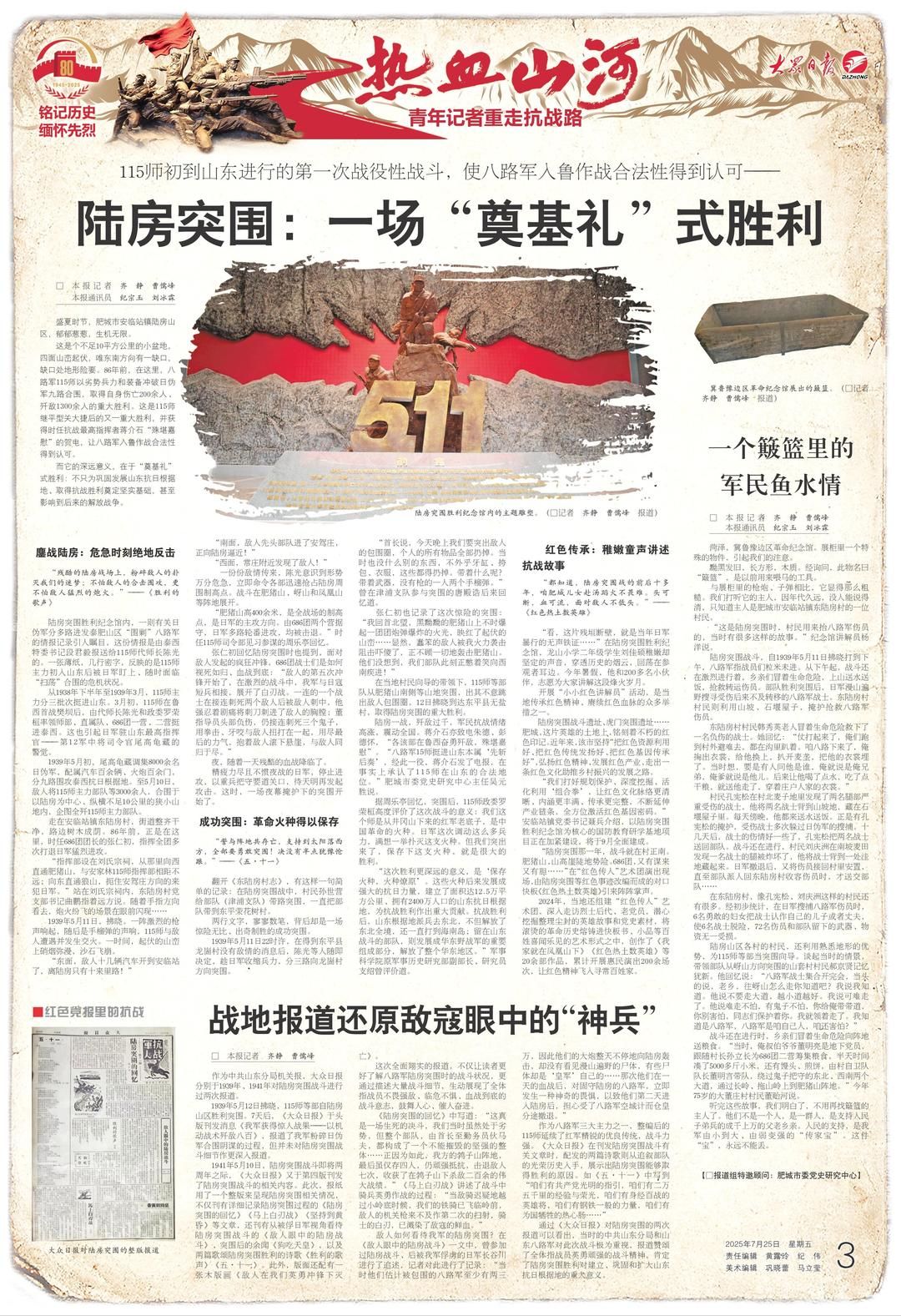 大众日报对陆房突围的整版报道。