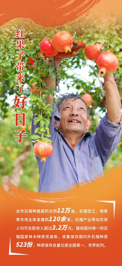 从张骞西域引种的宫廷珍品,到如今年产值近50亿元的富民产业。牢记嘱托,枣庄正把小石榴做成大产业,以“火红石榴”带动农民群众“红火生活”。