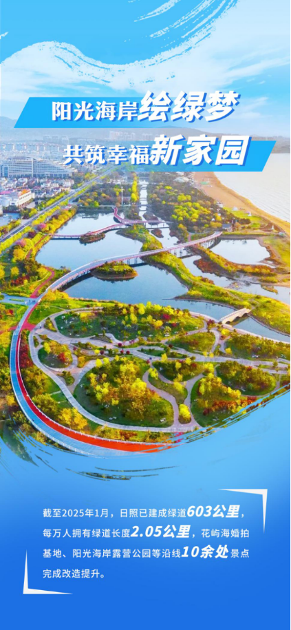 2024年5月,习近平总书记在日照市阳光海岸绿道考察时强调:建设绿道应市民所需,是得民心之事。推进中国式现代化,就是要让人民群众的生活越来越好。生态环境好,老百姓就多了一份实实在在的幸福感。大家要一起动手,共同建设和呵护美好家园。