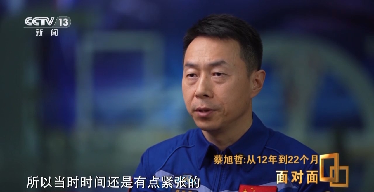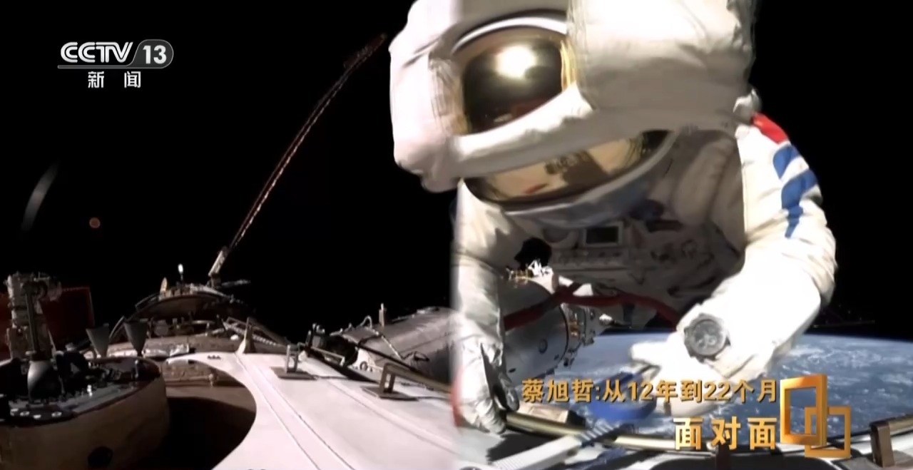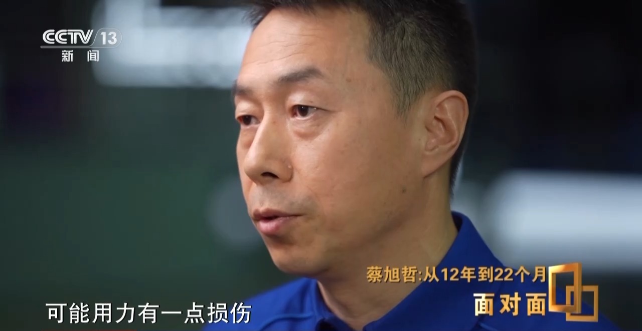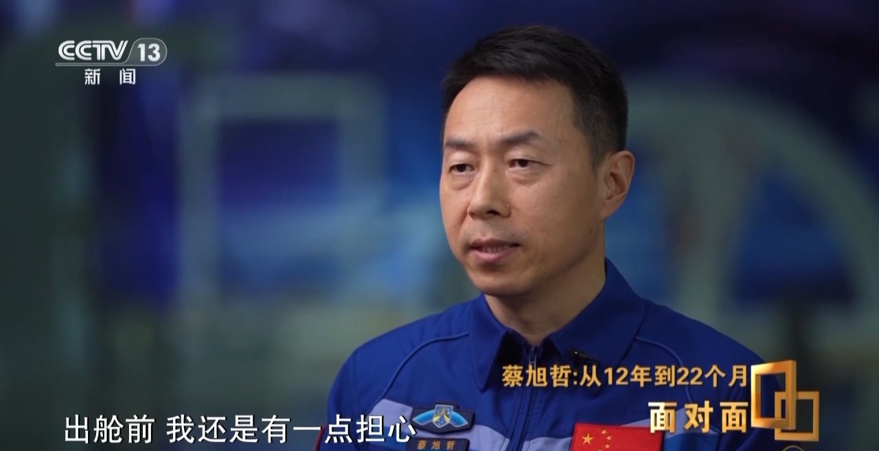 蔡旭哲:出舱前,我还是有一点担心。担心这个设备,别因为我的原因,到时候造成了进一步的破坏。