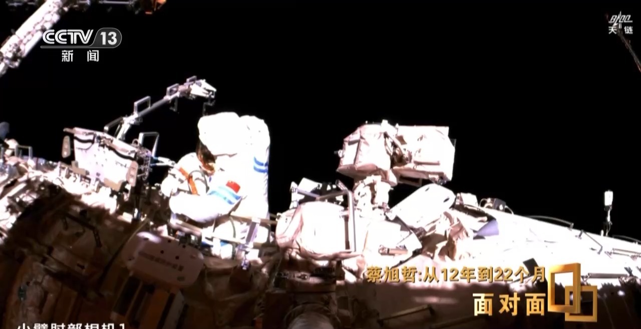 当时,蔡旭哲和宋令东已经在舱外工作了七个多小时,他们使用的是我国第二代飞天舱外航天服。