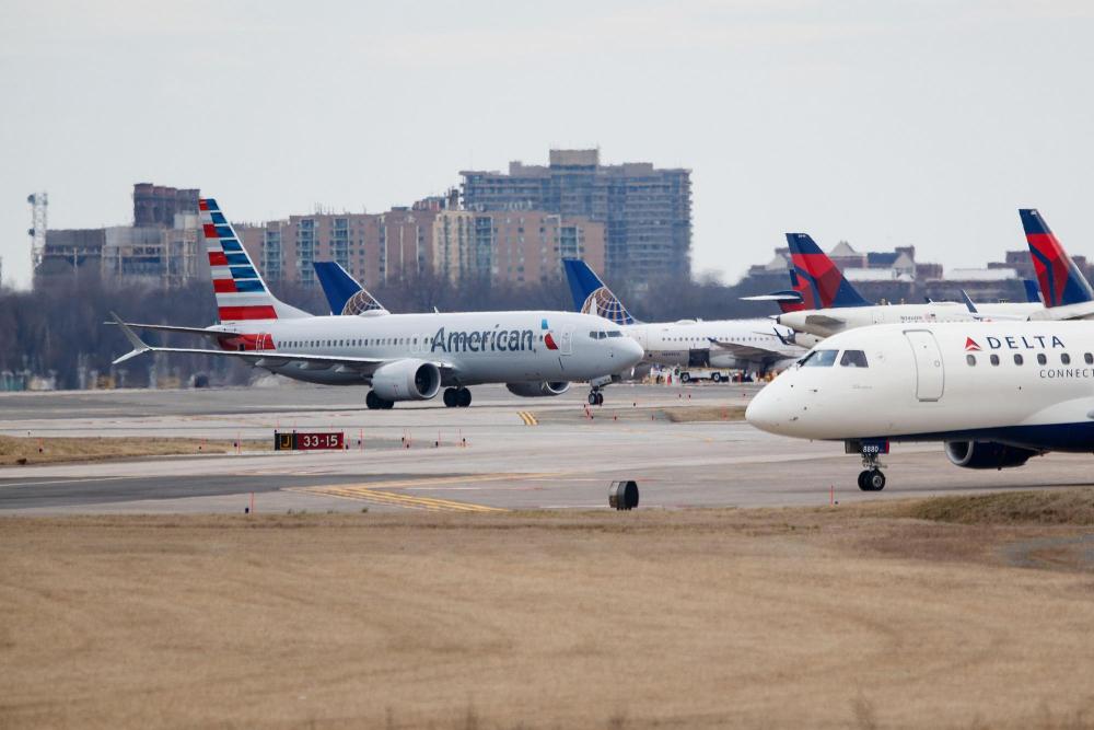 2019年3月13日,一架波音737 Max 8型飞机降落在美国首都华盛顿附近的里根机场。新华社发(沈霆摄)