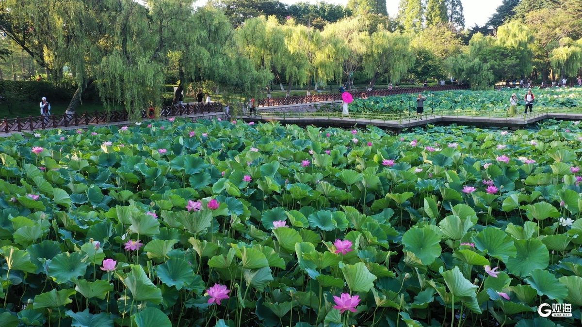 青岛日报社/观海新闻7月30日讯 “接天莲叶无穷碧,映日荷花别样红。”眼下正值荷花绽放时节,中山公园小西湖很是迷人。湖面上,荷叶层层叠叠,宛如绿色的波浪;粉嫩的荷花或含苞待放、或尽情盛开,在阳光的映照下娇艳欲滴,与周边的亭台、垂柳相映,构成了一幅如诗如画的图景。这般美景自是吸引不少拍照爱好者纷至沓来,他们手持相机、手机,从不同角度捕捉荷花的绰约风姿,用镜头定格这夏日的绚烂与美好。(青岛日报/观海新闻记者 刘栋 摄影报道)