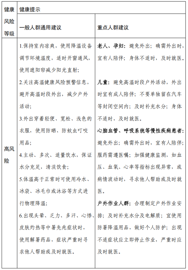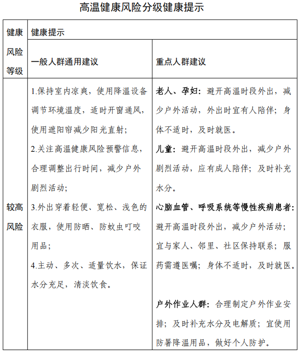 市疾控中心专家潘璐介绍,新升级高温健康风险预报平台与传统的高温预报不同,其分级标准是根据高温与循环系统疾病、呼吸系统疾病的超额死亡率的暴露反应关系分析得到的,因此,更能够体现区域性特征,并更加关注高温对健康的影响。该平台根据温度达到的风险级别,针对一般人群和重点人群(老人、孕妇、儿童、心脑血管和呼吸系统等慢性疾病患者、户外作业人群)分别给出了差别化的具体建议。市民可以登录青岛市疾控中心官方网站和微信公众号,实时查询高温健康风险等级。(青岛日报/观海新闻记者 黄飞)