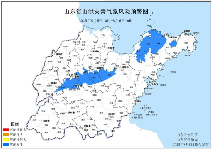 山东省水利厅和山东省气象局8月5日联合发布山洪灾害气象预警: