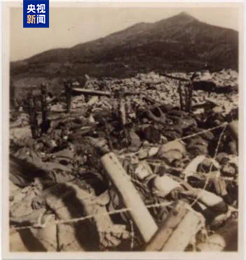 △紫金山下被日军屠杀的同胞尸体堆积如山