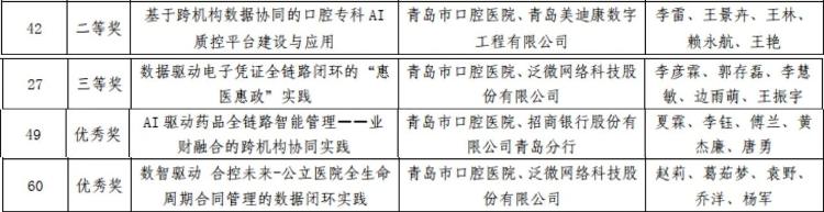 其中,《基于跨机构数据协同的口腔专科AI质控平台建设与应用》项目在 “跨机构数据协同应用赛道” 中表现突出,荣获二等奖;《数据驱动电子凭证全链路闭环的 “惠医惠政” 实践》项目在 “惠医惠政场景应用赛道” 中斩获三等奖;《AI驱动药品全链路职能管理 -- 业财融合的跨机构协同实践》项目与《数智驱动 合控未来 - 公立医院全生命周期合同管理的数据闭环实践》项目,分别在 “跨机构数据协同应用赛道” 和 “其他场景创新应用赛道” 中获得优秀奖。
