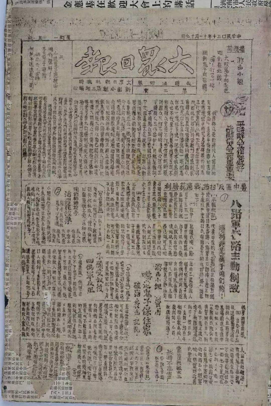 留守的第三战时新闻小组在极其险恶的环境中,坚持游击办报。这些同志既是战斗员,也是发行员。情报小组的工人张海松在联络工作之余,将报纸读给群众听,一传十、十传百,百姓们将大众日报称为“大报社”,并纷纷表示:“有‘大报社’在,我们就放心。”