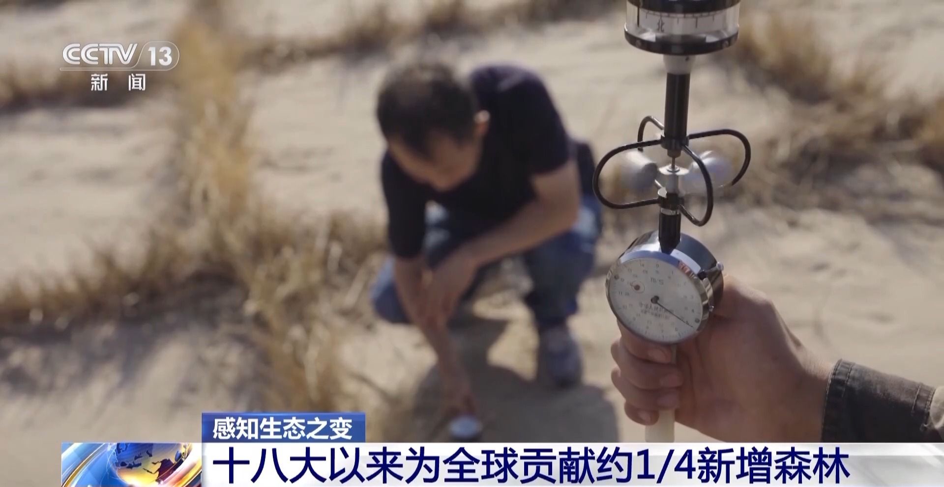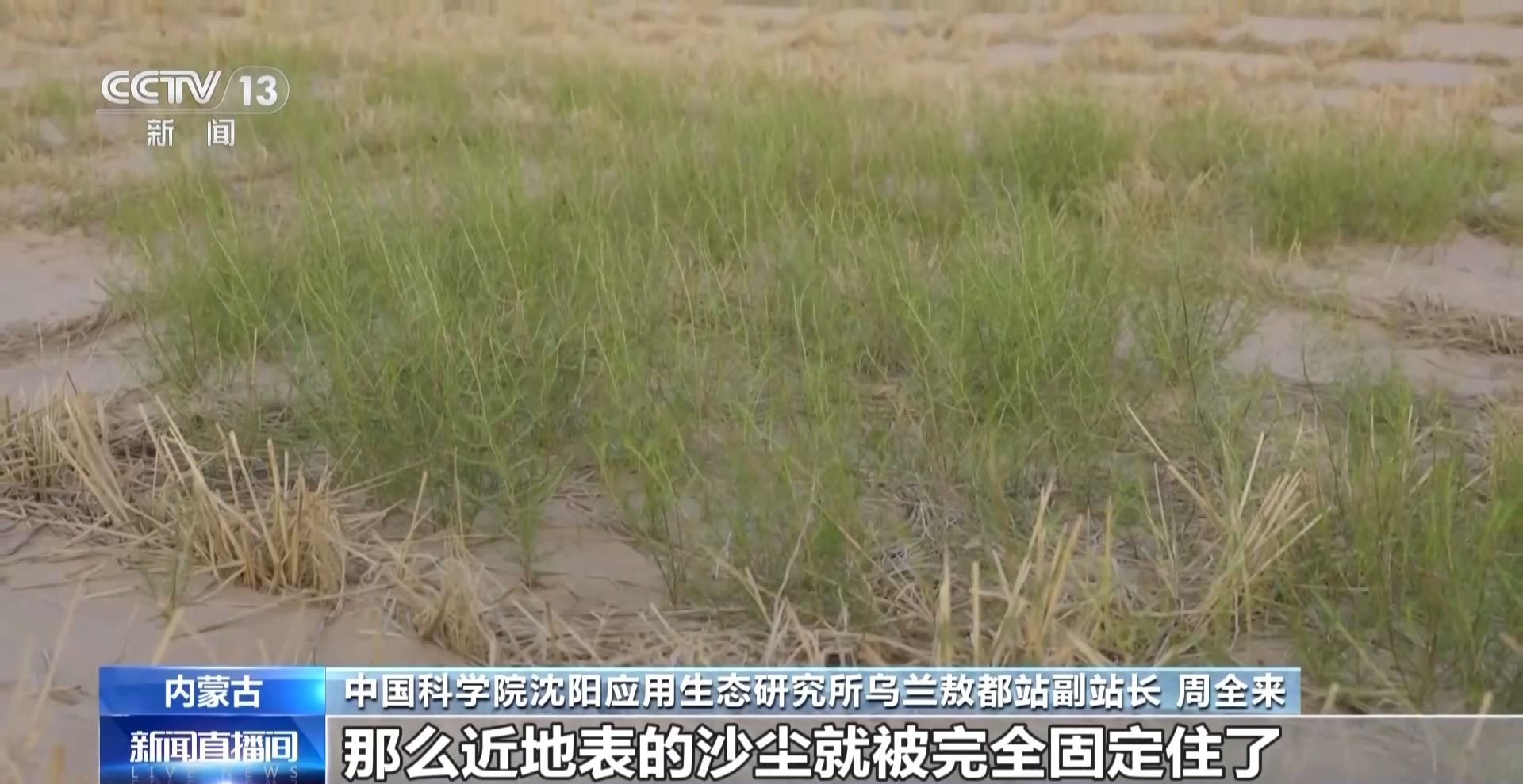 中国科学院沈阳应用生态研究所乌兰敖都站副站长 周全来:固沙效果使地表风速大大降低,近地表的沙尘就被完全固定住了。