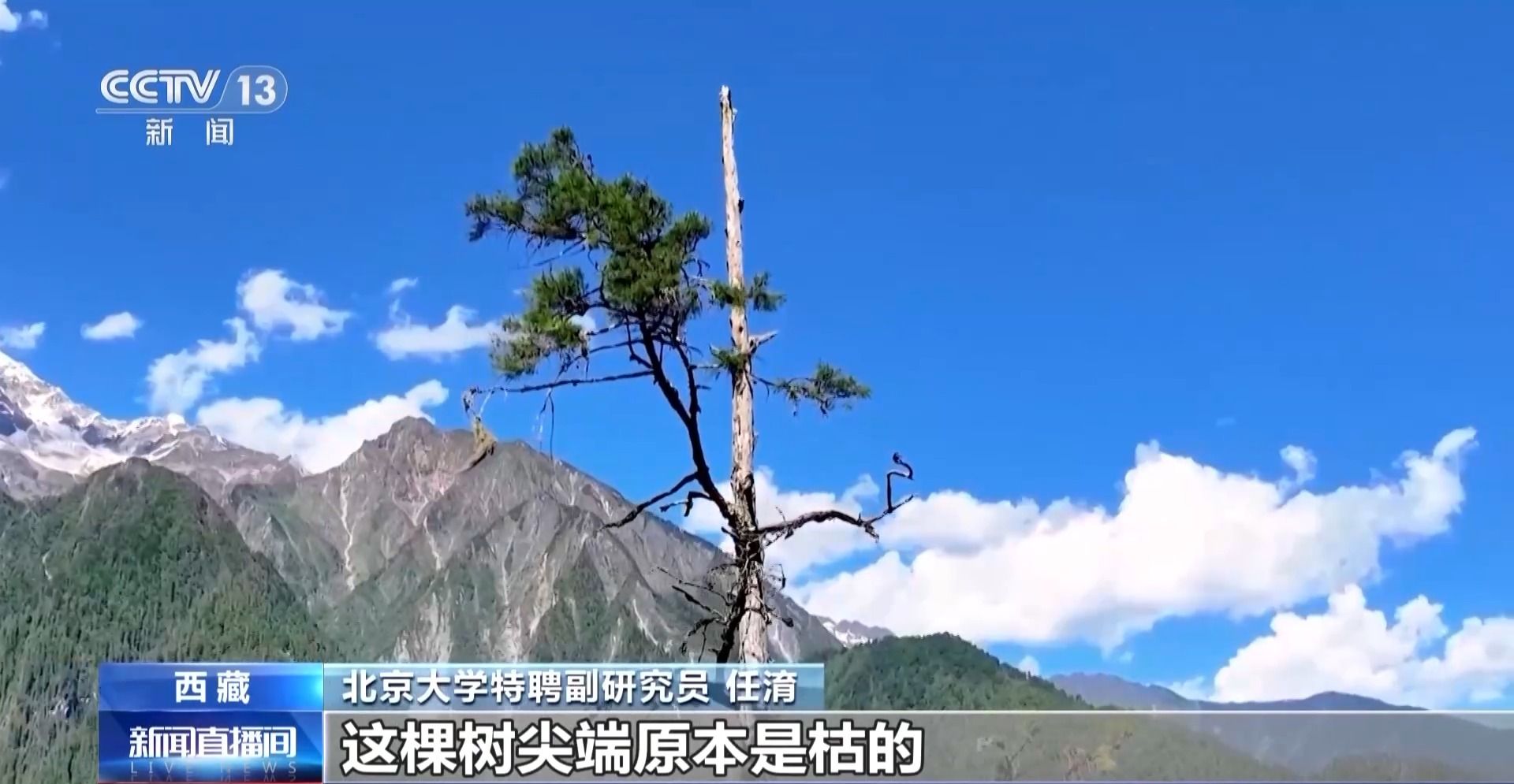 北京大学特聘副研究员 任淯:这棵树尖端原本是枯的,今年我们又重新对这个区域进行了采集。没有这种严格的保护,这片区域不会重新焕发新的生机。