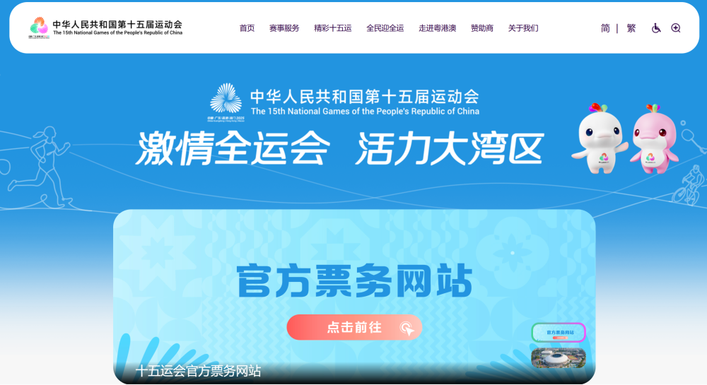 比赛门票均可通过十五运会官方票务网站(https://ticket.baygames.cn)残特奥会官方票务网站(https://ticket.baygamespara.cn),或搜索“十五运会官方票务”“2025残特奥会官方票务”小程序购买。组委会还将开通线上代售渠道、线下代售渠道、场馆售票亭等购票渠道。