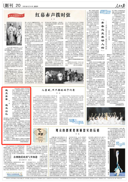 8月14日,《人民日报》副刊版面发文章《遇见美景 遇见自己》,作者为香港演员叶童。
