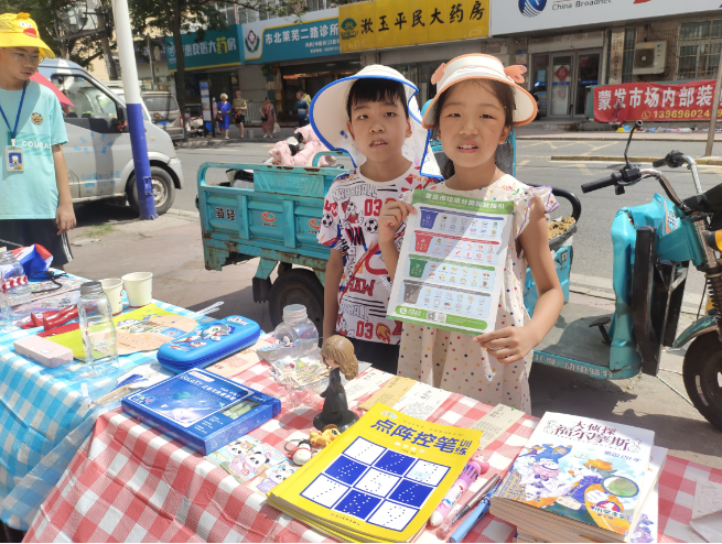 清晨的阳光洒在社区广场上,五彩缤纷的摊位一字排开。孩子们带来的物品琳琅满目:有读过的课外书籍、玩过的玩具、用过的文具,还有亲手制作的手工艺品。五年级的孙同学正在向“顾客”介绍他收藏的漫画书:“这套书我都看完了,现在想让它继续陪伴其他小朋友。”稚嫩的话语中透着真诚。每个孩子都化身“小老板”,热情地向“顾客”介绍自己的商品。