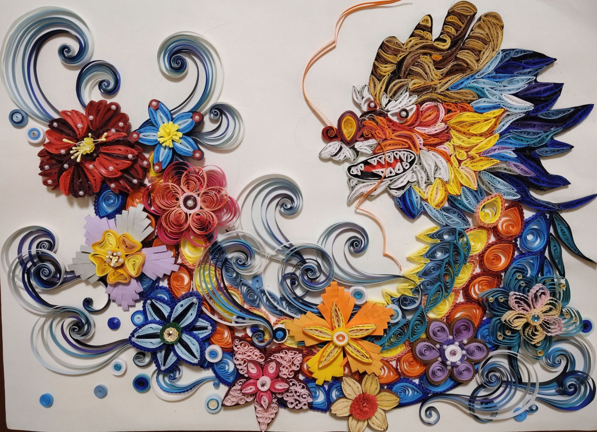 《游龙戏水》(衍纸手工作品)