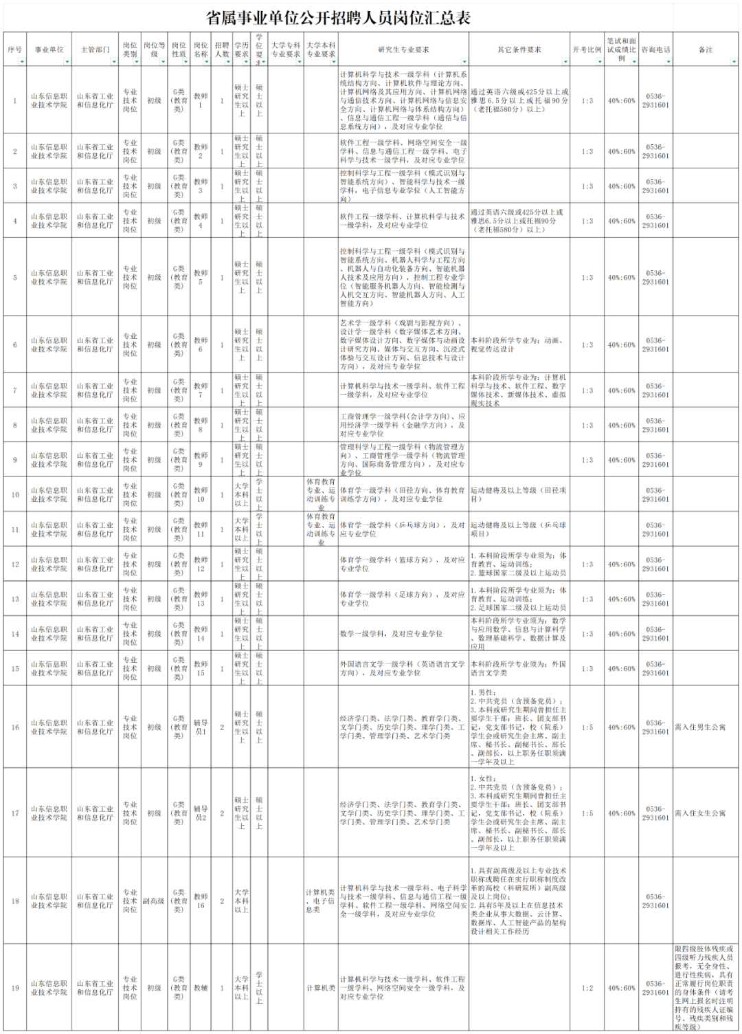 打印笔试准考证时间以及笔试、面试具体时间请随时关注山东信息职业技术学院网站“通知公告”栏目,不再电话通知本人。